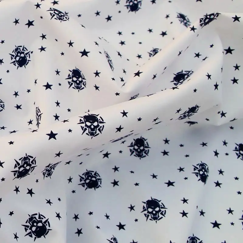 Ткань с черепами-череп и звезда напечатаны на белом фоне