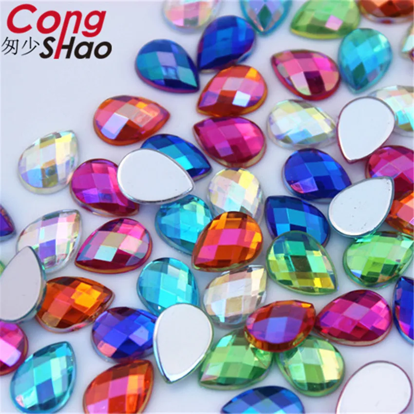 Конг Шао 200 шт. 10*14 мм AB Красочные Кристаллы акрил падения Rhinestone Аппликация flatback DIY для одежды украшения craft YB189