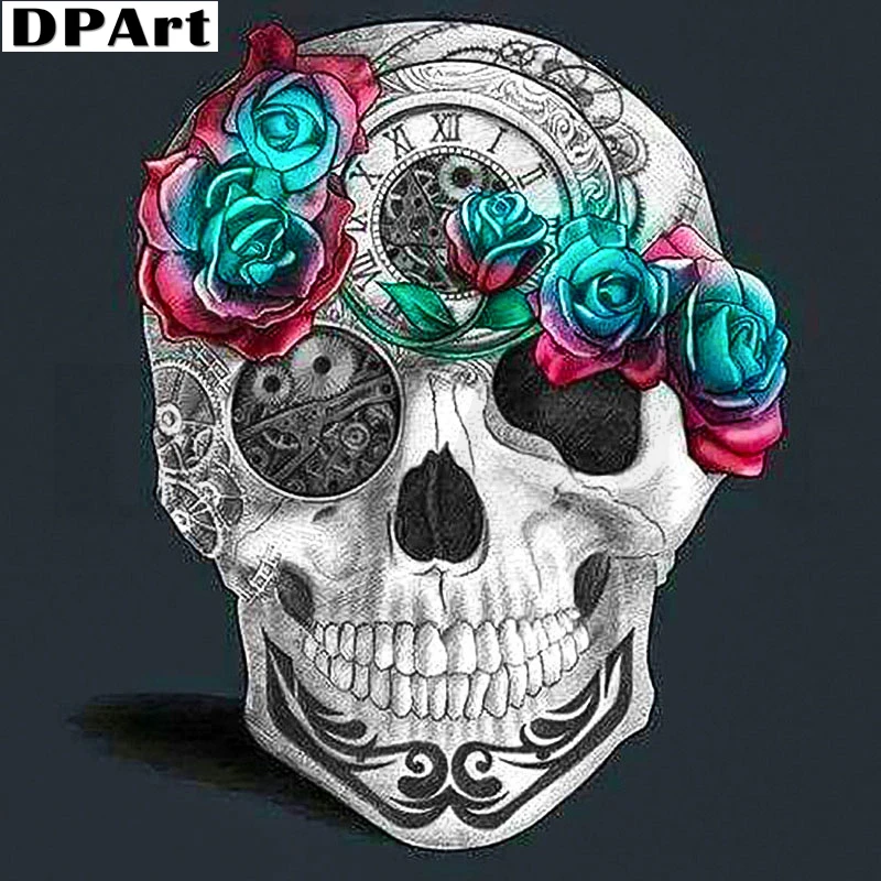 Алмазов картина Полная площадь/круглый дрель череп часы из розового 5D Алмазная вышивка крестом Комплект мозаика со стразами T220