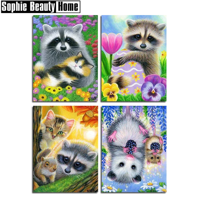 Новая распродажа 5D Алмазная вышивка "Енот" и цветы Diy Полная алмазная живопись Вышивка мозаика подарок 19C037