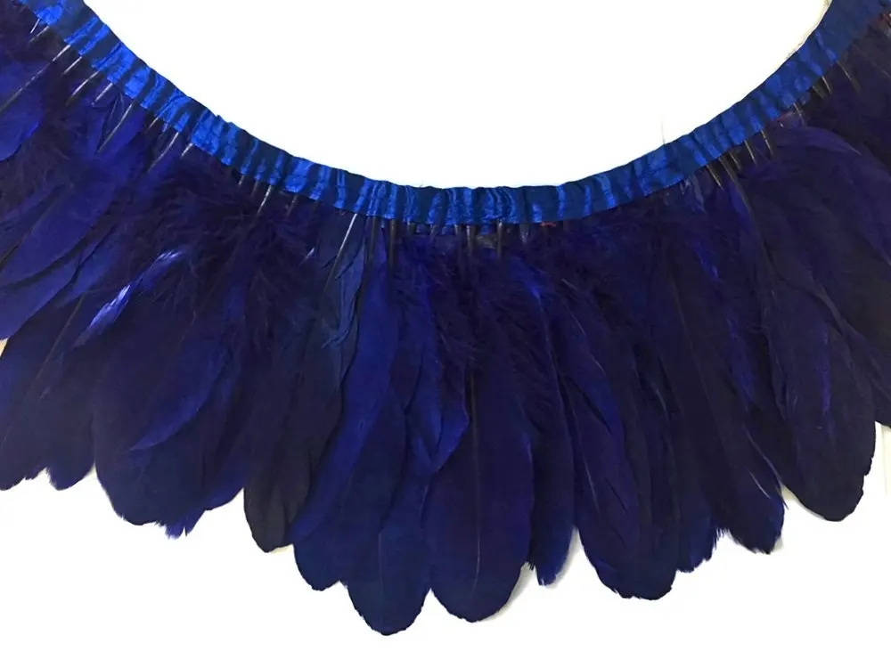 Оптовая продажа 2 м/лот окрашенная темно-синий украшение из гусиных перьев реального гусиное перо ленты с бахромой платье ремень декоративн...