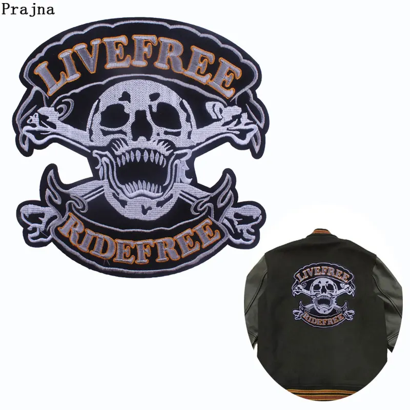 Прайна Вышитые череп металлическая аппликация заплатка для одежды Rider Custom Байкер Панк большой наклейки футболка Diy Декор F