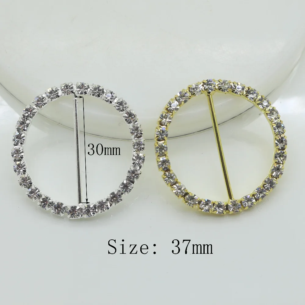 Мода 10 шт. 37 мм круглый Потрясающие Ясно со стразами и пряжкой пригласили на свадьбу Rbbon Rlider, DIY блестящие украшения Ремни пряжка