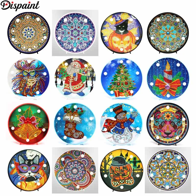 Dispaint алмазная живопись светодиодный светильник Мандала 5D алмазная вышивка пейзаж Стразы DIY алмаз Рождество Хэллоуин