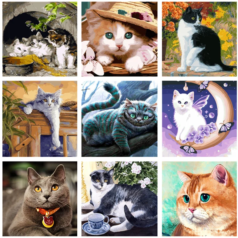 Картины по номерам с кошками 40x50 см DIY Акриловая Краска на холсте Ручная Краска ed масляная краска ing картины по номерам наборы животных искусство