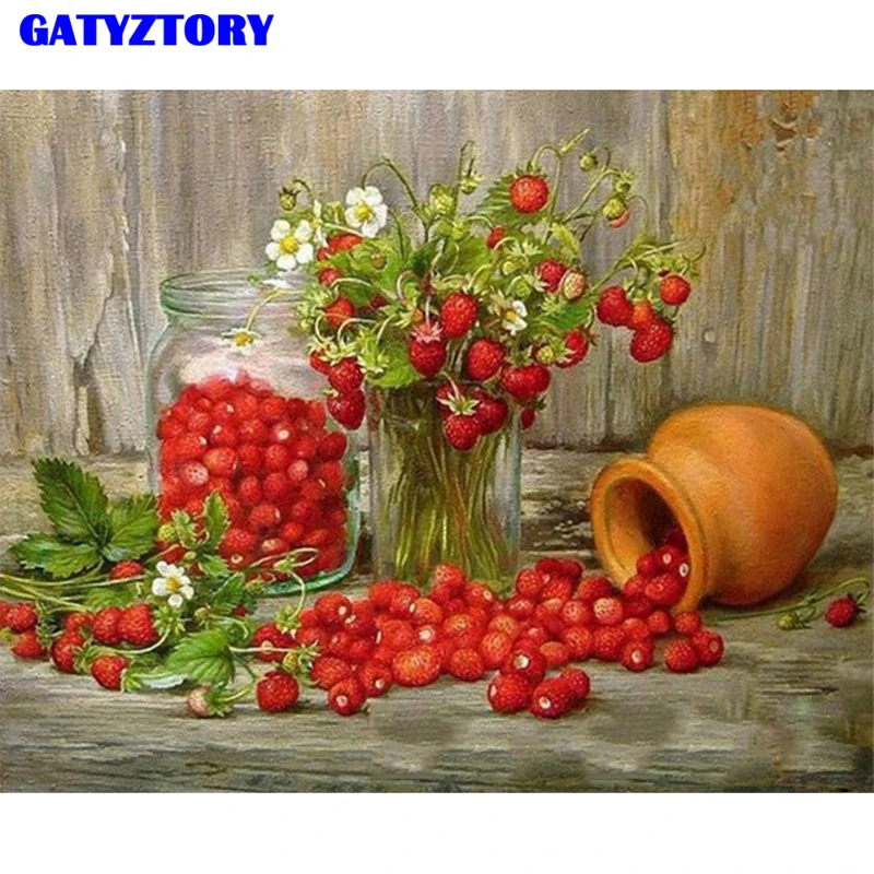 GATYZTORY рамка фрукты клубники DIY цифровой набор для рисования по номерам ручная роспись Современная Настенная живопись холст живопись для художественных работ