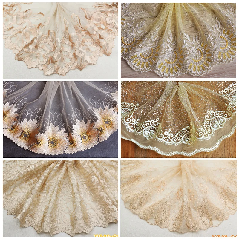 3 метра 17-25 см светло-желтая сетка вышивка кружевная отделка Сделай сам ручная работа одежда рукоделие Швейные аксессуары Кукольное украшение 103