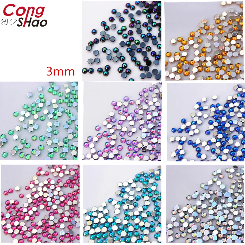 Cong shao 2000 шт. 3 мм 3D Nail Art Советы AB Цвет flatback кристалл акриловые горный хрусталь отделкой телефон Стразы для ногтей ногти аппликация CS625