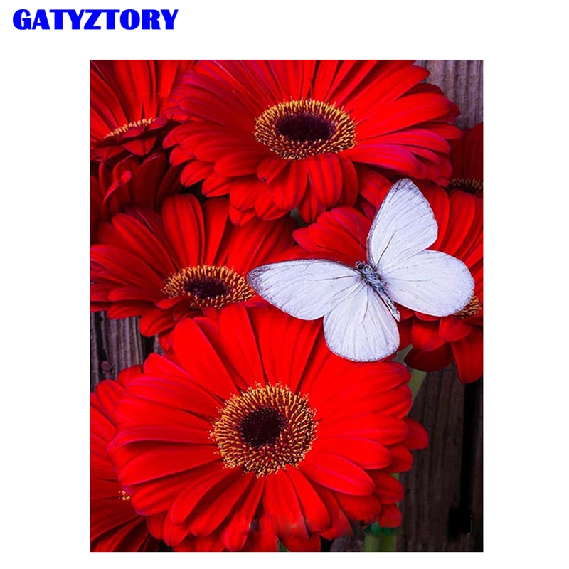 GATYZTORY в рамке DIY живопись по номерам цветы Бабочка Набор Холст Картина Краска по номерам искусство на стену для домашнего декора