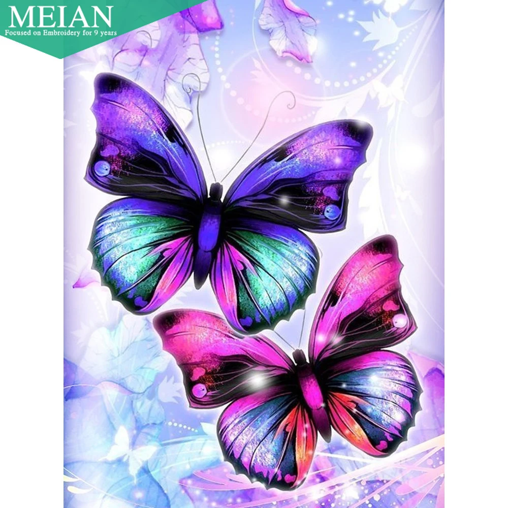 MEIAN 5D DIY полная круглая Алмазная картина животное Бабочка Мозаика Алмазная вышивка Декор домашний горный хрусталь ручная работа