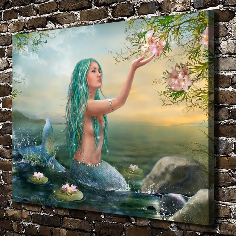 5d рукоделие, Алмазная мозаика картина, вышитая бисером комплект квадратный алмаз вышивка Китайский Лотос русалка девушка украшения дома ...