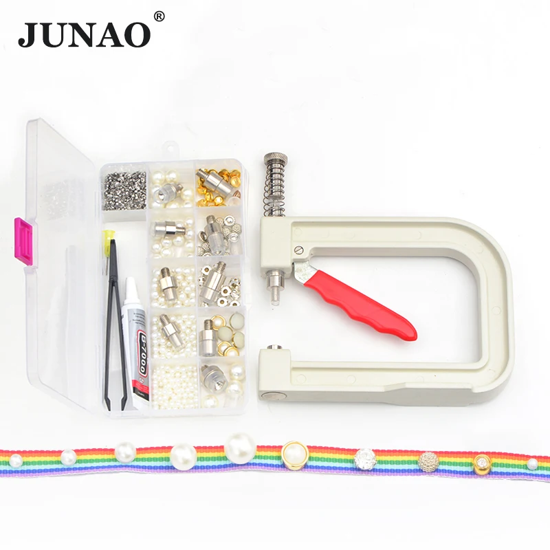 JUNAO, 10 шт., форма, белые жемчужные бусины, перламутровые инструменты, инструменты для фиксации заклепок, Ручной пресс, инструменты для самостоятельного украшения одежды