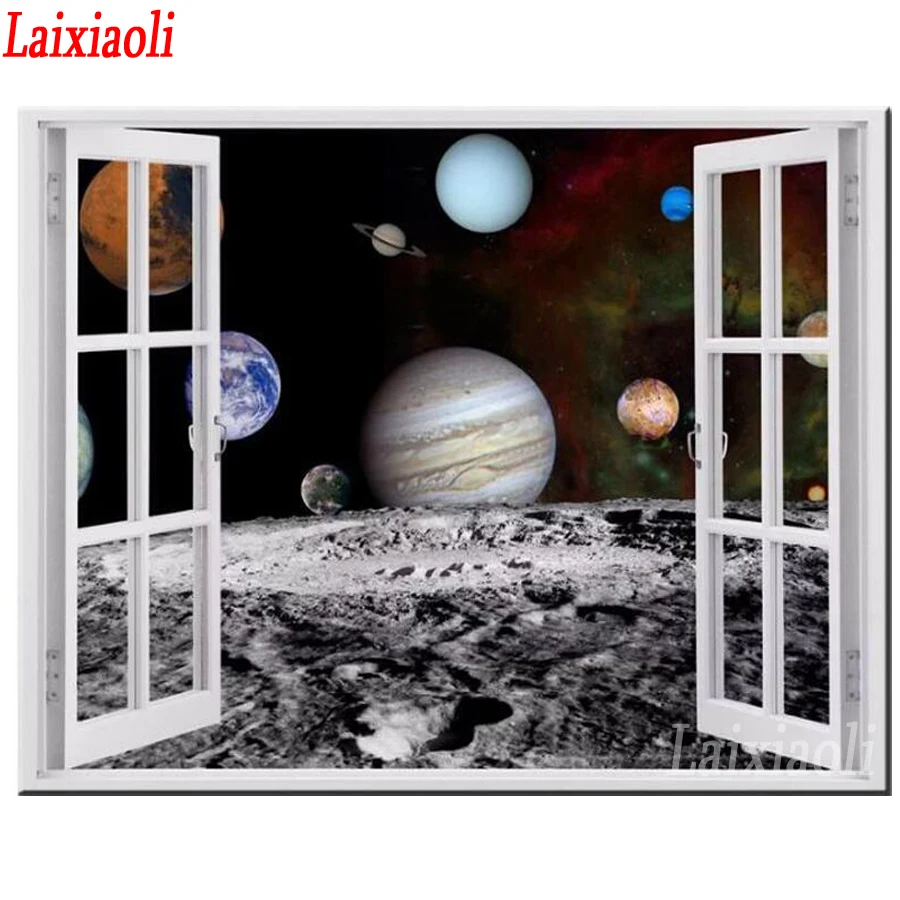 Окно снаружи Галактика космический пейзаж полный квадратный круглый алмаз живопись 3d Мозаика Алмазная вышивка 5D DIY хобби декор комнаты
