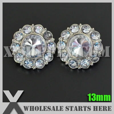 Бесплатная доставка 13 мм круглая пластиковая Алмазная пуговица из акрила для одежды, Цветочный центр/серебряная основа со стразами/оптовая продажа