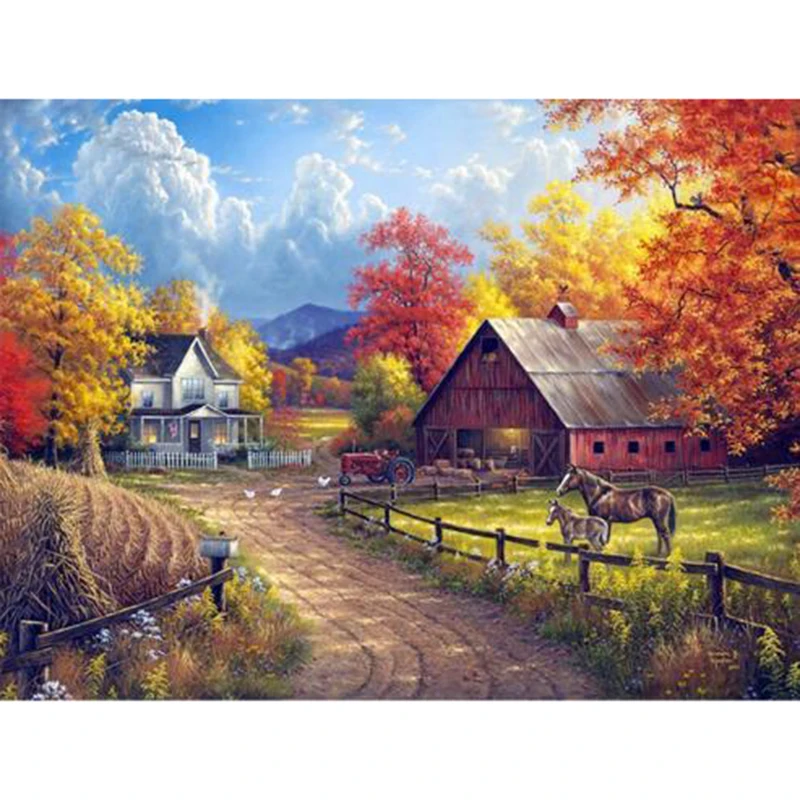 Алмазная вышивка живопись ферма осень Алмазная вышивка с пейзажем камни в форме ромба природные пейзажи обои Европейские предметы интерье...