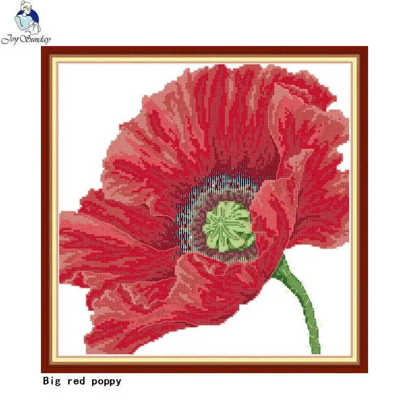 Joy Sunday red poppy flowers counted and stamping cross stitch wholesale flowers pattern 14ct 11ct embroidery set DIY needlework