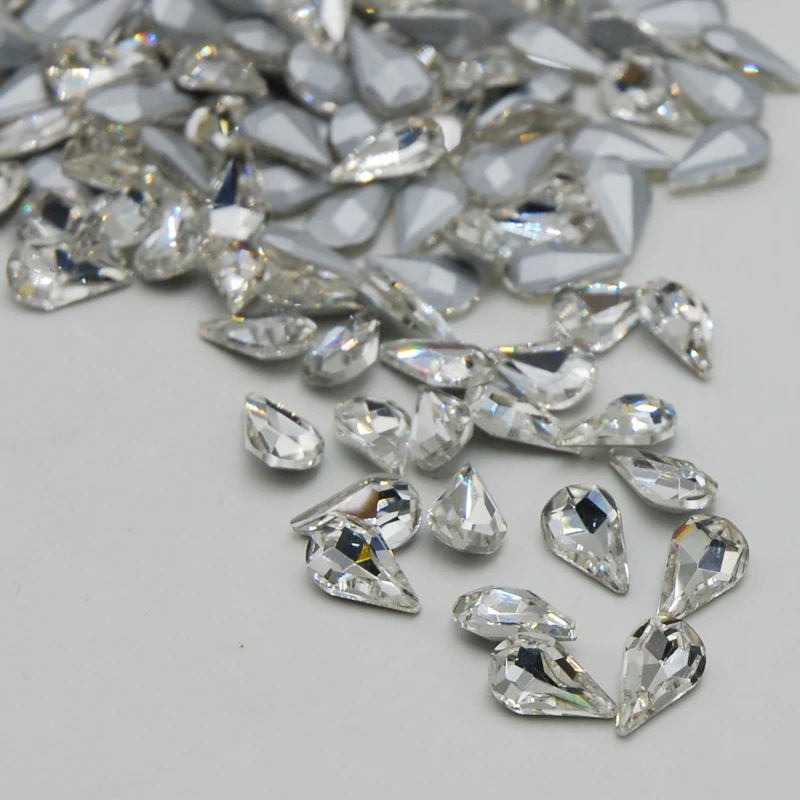Каплевидная груша Форма Crystal Clear Стекло Rhinestone Указал Назад 5x8 мм 6x10nn 7x10 мм 8x13 мм 100 шт. для изделий решений платье