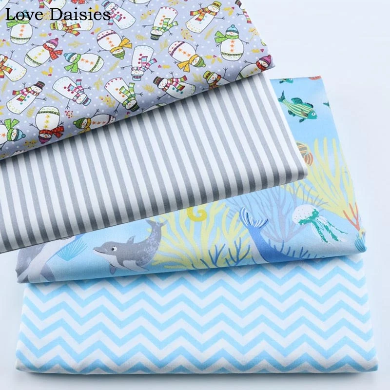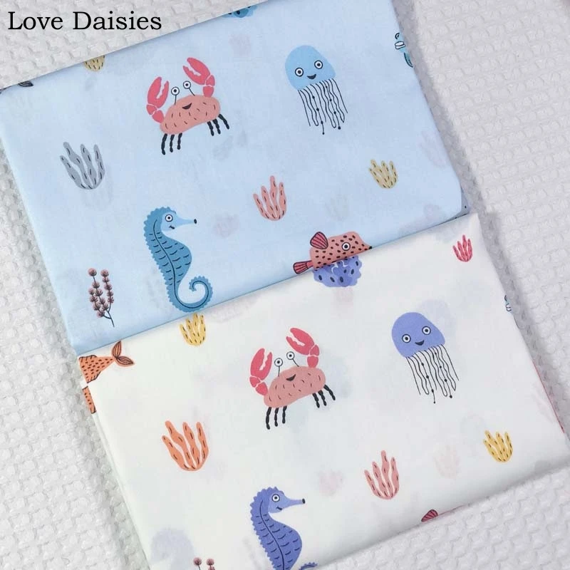 100% хлопок саржа Мультфильм Белый Синий Морской Мир Рыба Осьминог морской конек ткань детское постельное белье Простыня одежда Декор ручной...