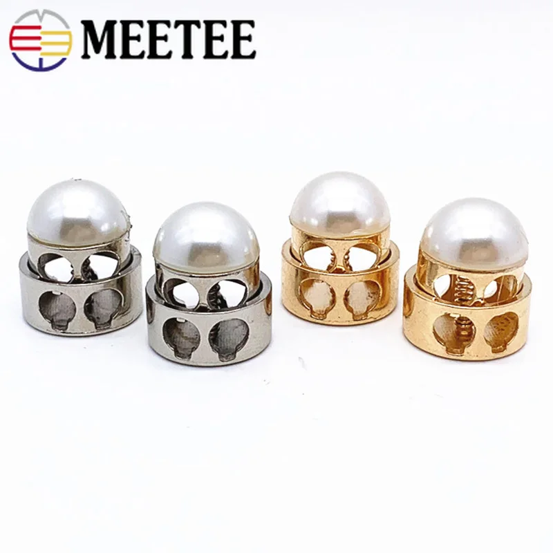 Meetee 10 шт. металлический жемчужный Двойной Фиксатор с отверстием пряжки пружинная эластичная Регулировка шнура замок DIY шнур для шляпы конец Декор Кнопка DS010