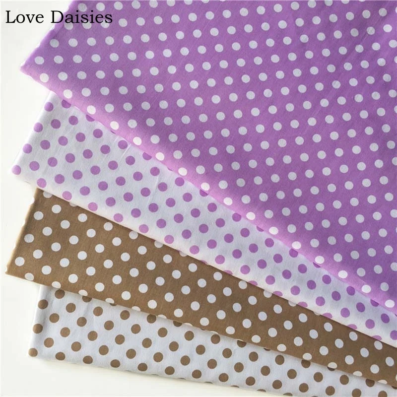 100% хлопок фиолетовый коричневый белый горошек саржевая Ткань DIY для детей постельный принадлежности подушки платье ручная вышивка Лоскутн...