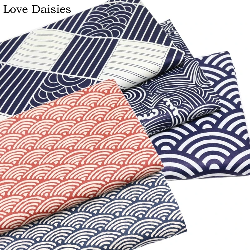 100% хлопок саржа японский стиль темно-синий волна проверить вентилятор для DIY материалы для рукоделия одежды лоскутное одеяло тела украшения ткань