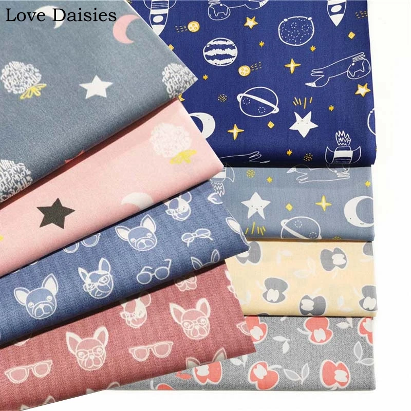 100% хлопок саржа ткань синий мультфильм корабль КИТ Outspace динозавр, робот Chevron ткани для DIY постельное белье домашний декор ручной работы