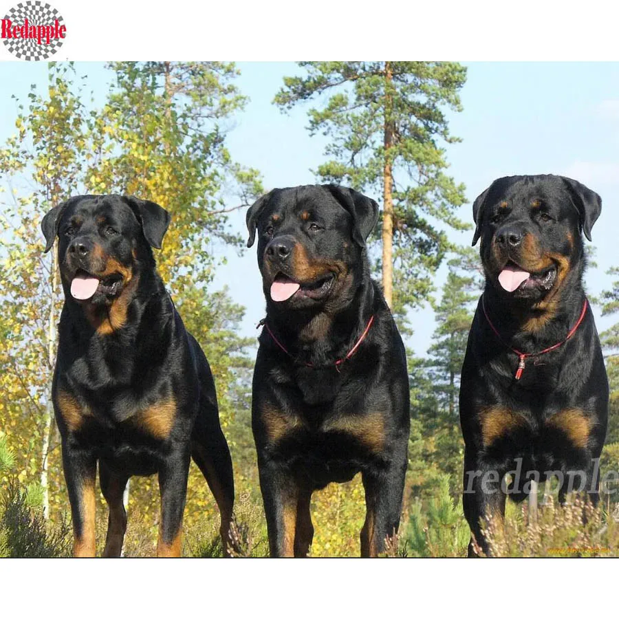 Изображение собаки из страз полный квадратный круглый горный хрусталь Алмазная вышивка Ротвейлер картина Алмазная мозаика Вышивка кресто...