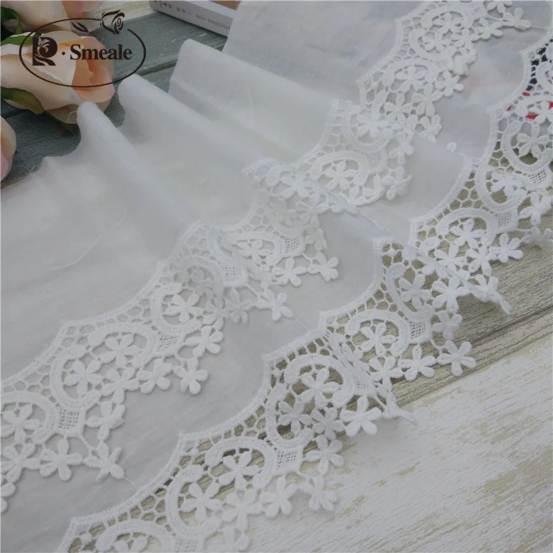 Высококачественное Двухслойное кружево из хлопка с вышивкой аксессуары для одежды DIY юбка подол кружевная лента 23 см RS884