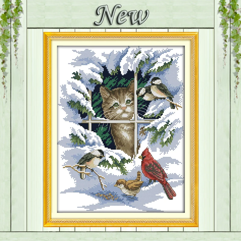 14CT 11CT DMC ручной работы вышивка крестиком наборы, Снежные пейзажи зимний Кот и птицы рукоделие вышивка крестиком наборы для ухода за кожей до...