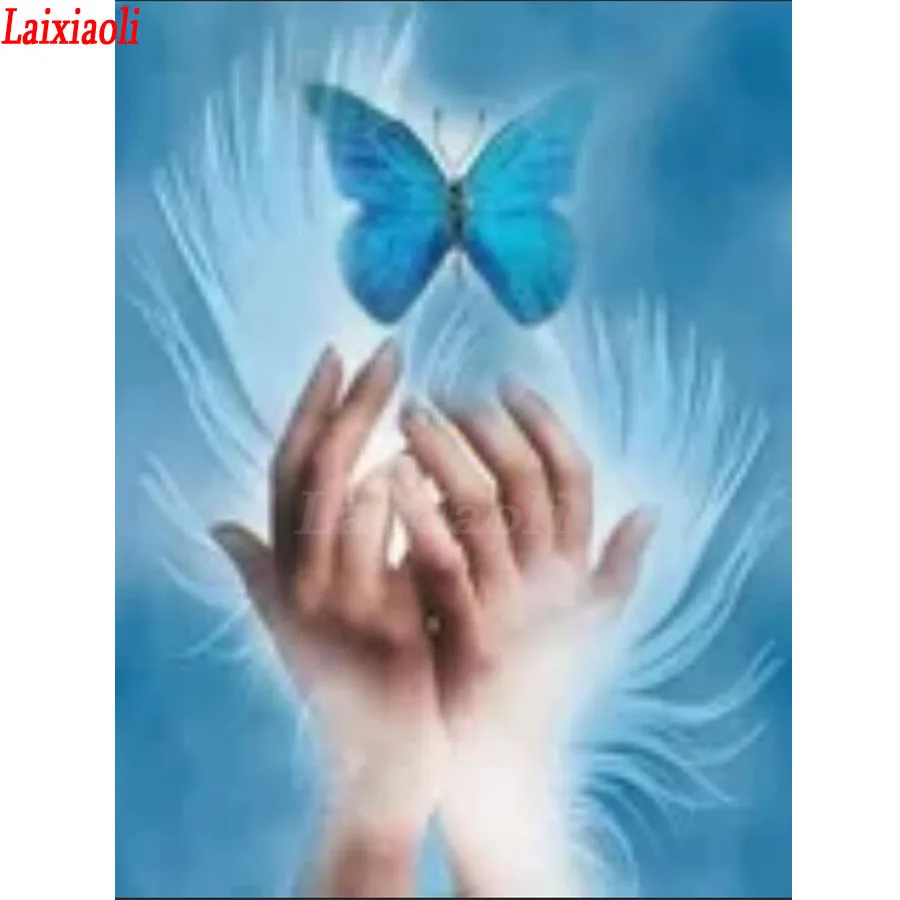 5d Вышивка крестиком Алмазная картина синие руки бабочка полный квадратный Круглый diy Алмазная вышивка мозаика стикер для украшения стен