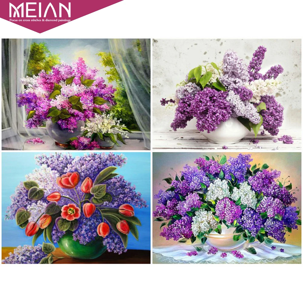 2020 MEIAN Flowers Diamond Painting Full Round Diamond Embroidery Picture Rhinestones Diamond Mosaic Lilac Cross Stitch Art