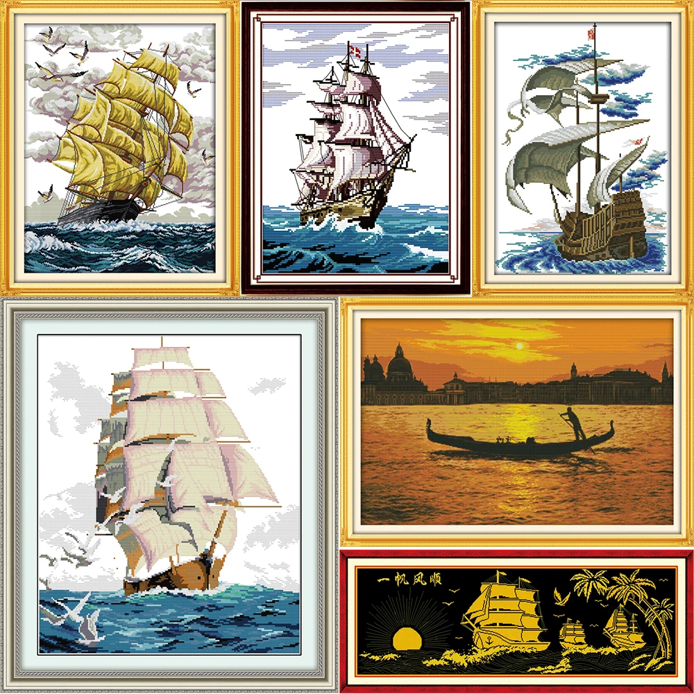 Joy Sunday Sail beauty of the river sea Счетный набор крестиков вышивка рукоделие
