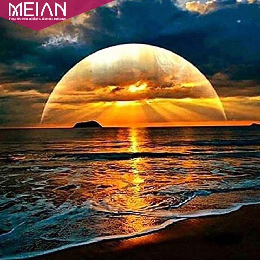 2020 MEIAN Sea 5D DIY Diamond Painting Rhinestones Mosaic Full Round Drill Diamond Embroidery Landscape Home Decor Hobby