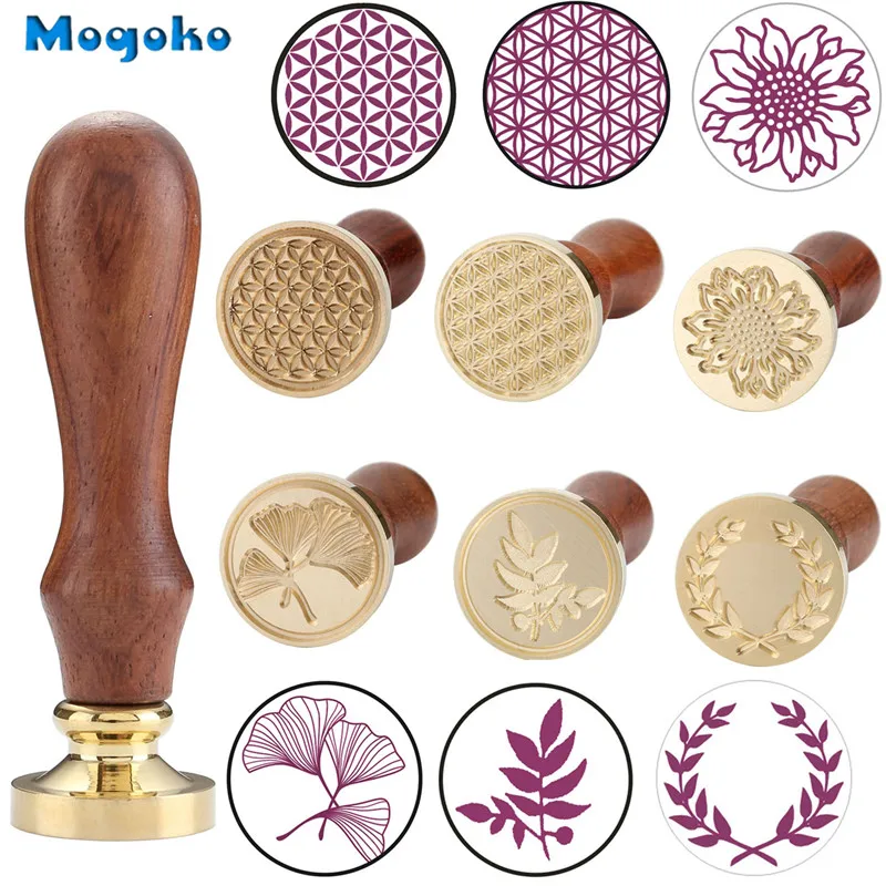 Mogoko воск печать штамп ретро дерево классический уплотнение печать, штемпели декоративные старинный штамп цветок жизни/Подсолнечник/оливко...