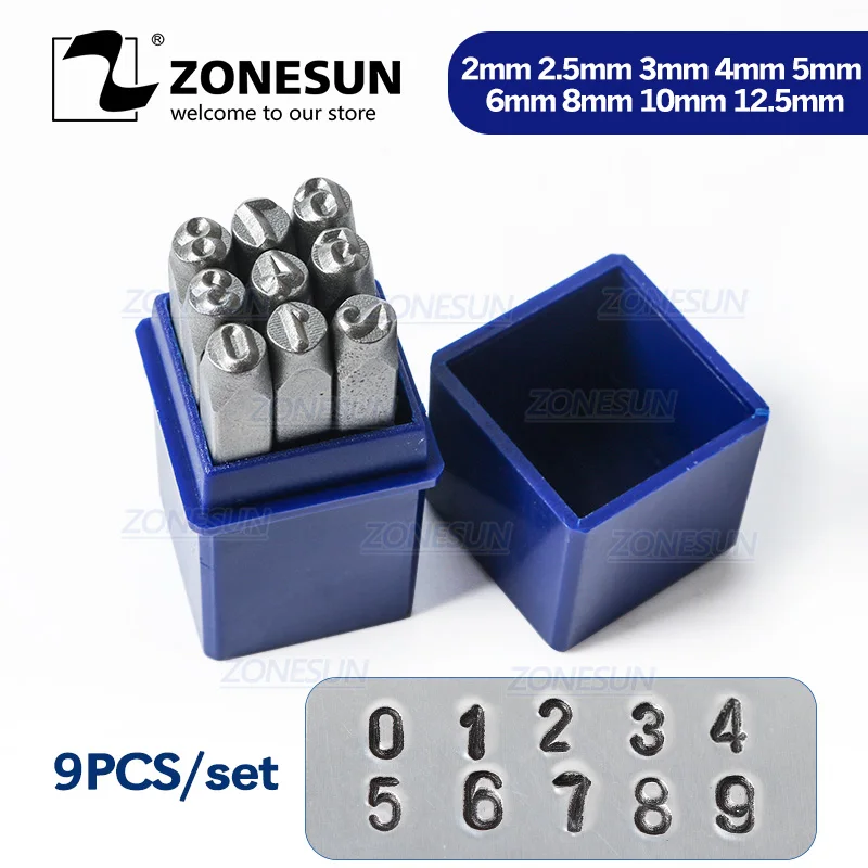 ZONESUN 9 шт., углеродистая сталь, античный оловянный номер "0-9", прямоугольные штампованные металлические инструменты 65 мм (2 4/8 ") x 11 мм, 1 комплект