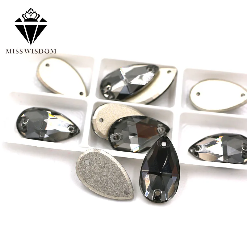 Высокое качество Flatback Стекло Кристалл Двойное Отверстие пришить стразы Teardrop Diamond черные Стразы diy костюмы интимные аксессуары