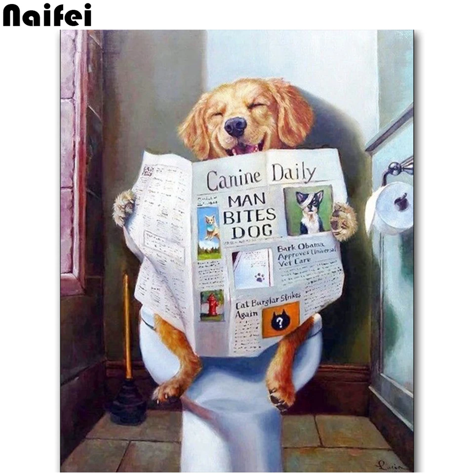 5D алмазная вышивка "сделай сам" аниамлы, собаки, туалеты, полная алмазная живопись, вышивка крестиком, стразы, мозаика, декор для ванной комнаты, искусство