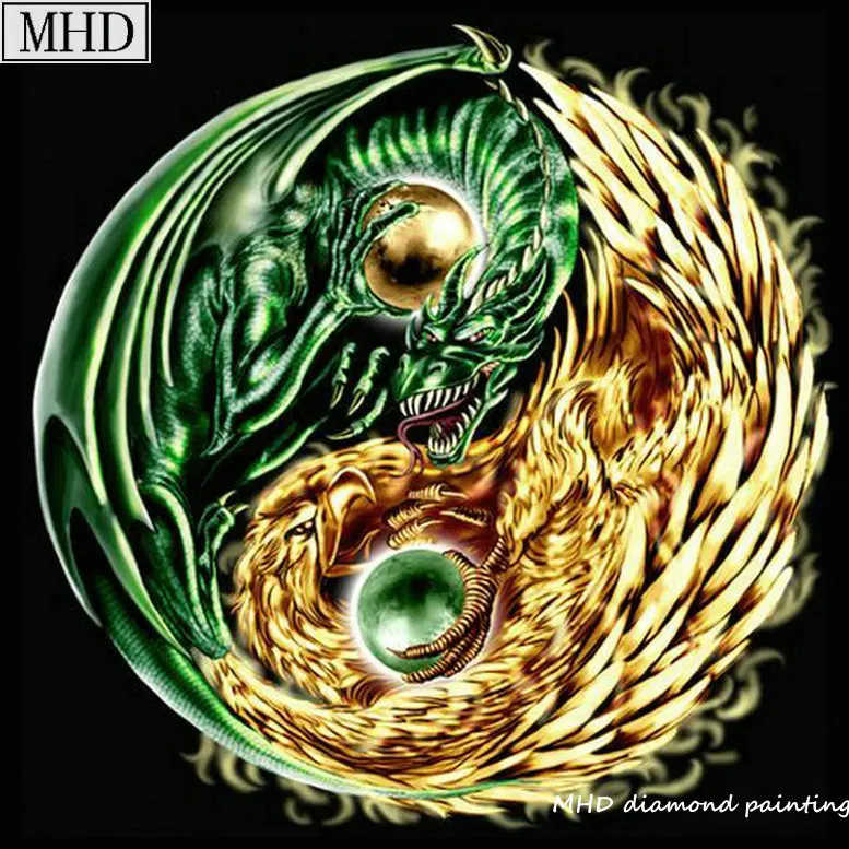Полный Круглый дрель 5d поделки алмазов картина два дракона ТАЙЦЗИ фотография вышивка крестиком комплект Стразы для вышивки art