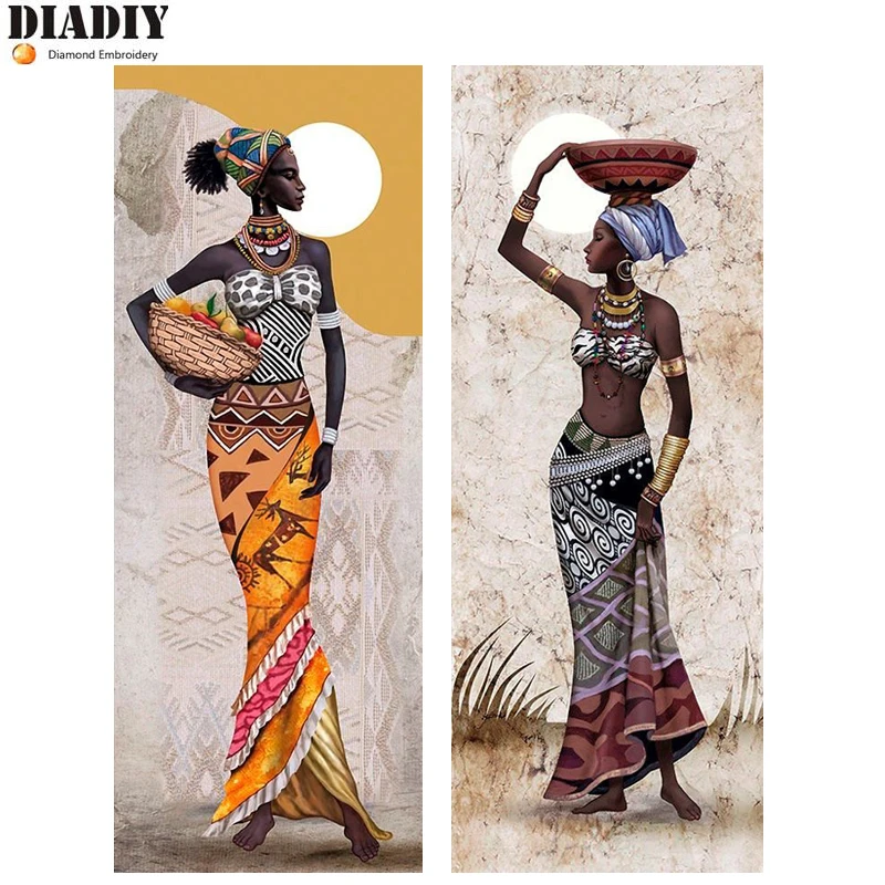 DIADIY рукоделие алмазная живопись Африканская женщина Алмазная Вышивка Полный Круглый дрель горный хрусталь мозаика картина украшение дома