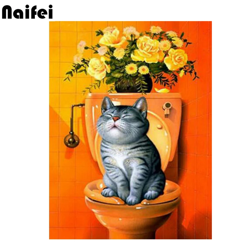 Мультфильм кошачий Туалет картина Полная площадь DIY 5D алмазная живопись наборы вышивки крестом мозаика Алмазная вышивка живопись Декор