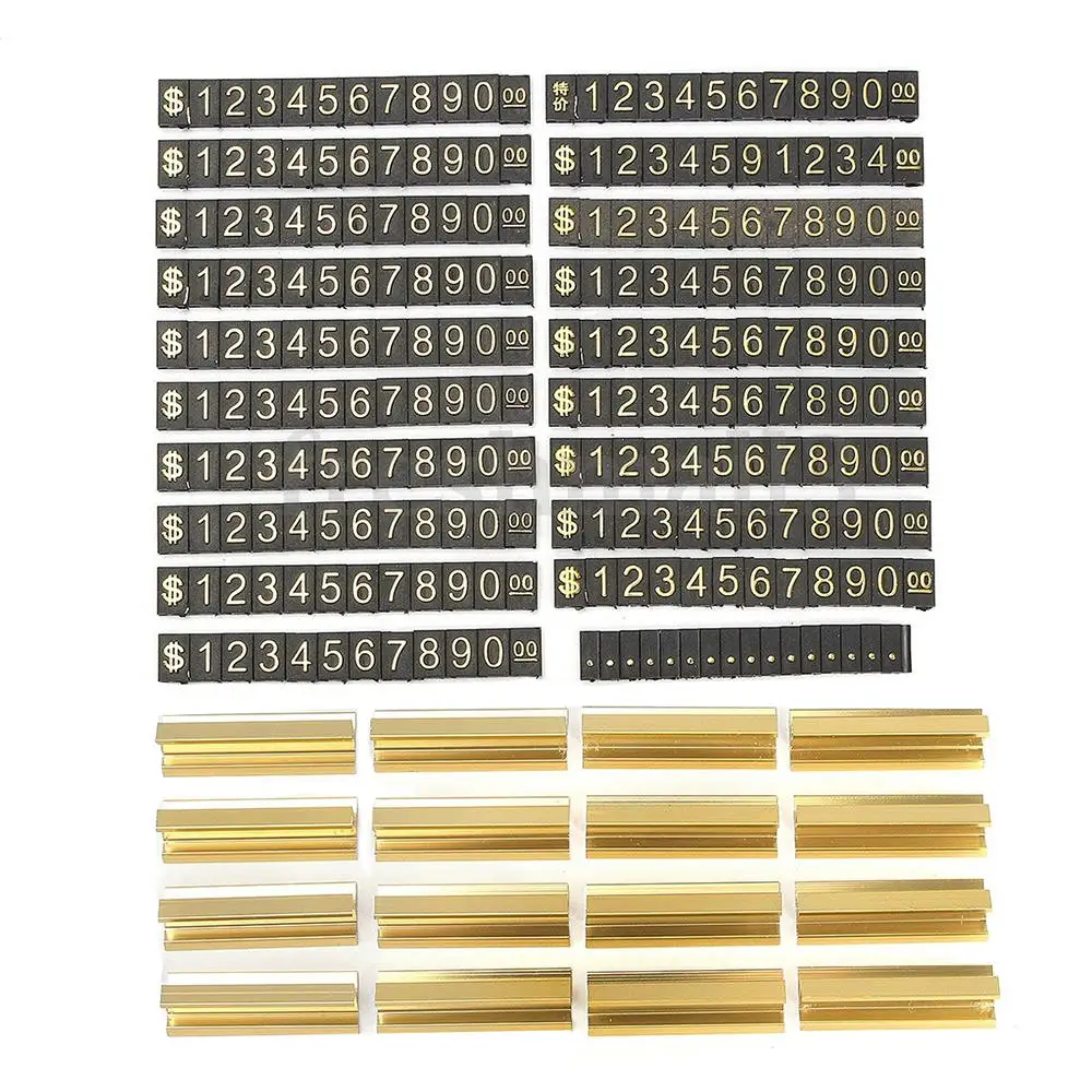 16 комплектов золотых цифр букв с базой Регулируемая цена Дисплей Стенд тег этикетки наборы цифр этикеток