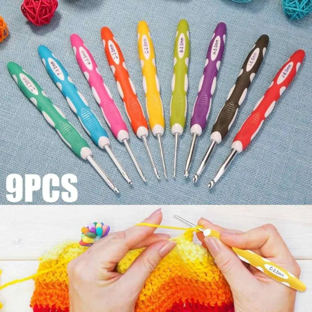 Новинка, для возраста от 9 шт мульти Цвет Пластик Алюминий крючки для вязания пряжа из термопластичной резины, Вязание иглы набор профессиональных модные Портативный