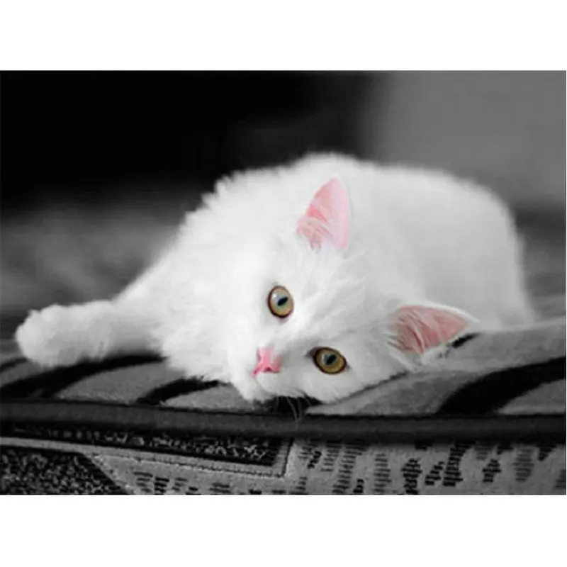 DIY Алмазная Вышивка Белый Кот узор полная алмазная живопись вышивка крестиком квадратная Алмазная мозаика животное картина украшение дома
