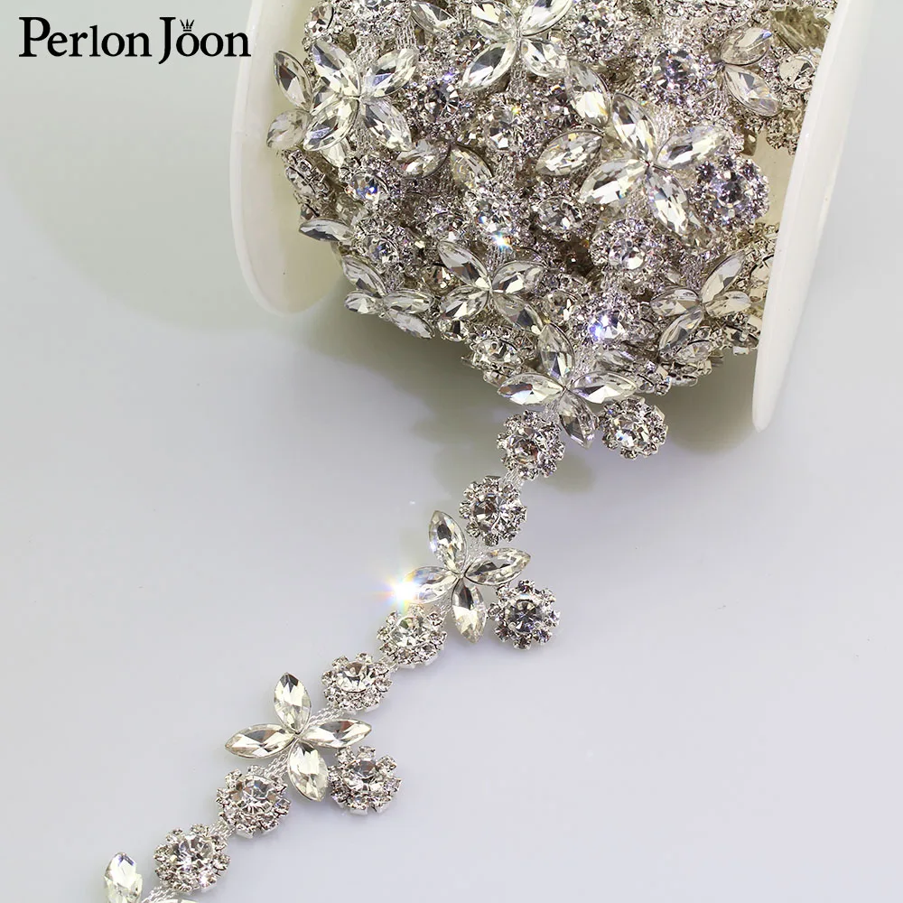 1 ярд блестящий цветок Стразы отделка покрытие серебро flatback Стекло Кристалл декоративная цепь аксессуары для одежды ML097
