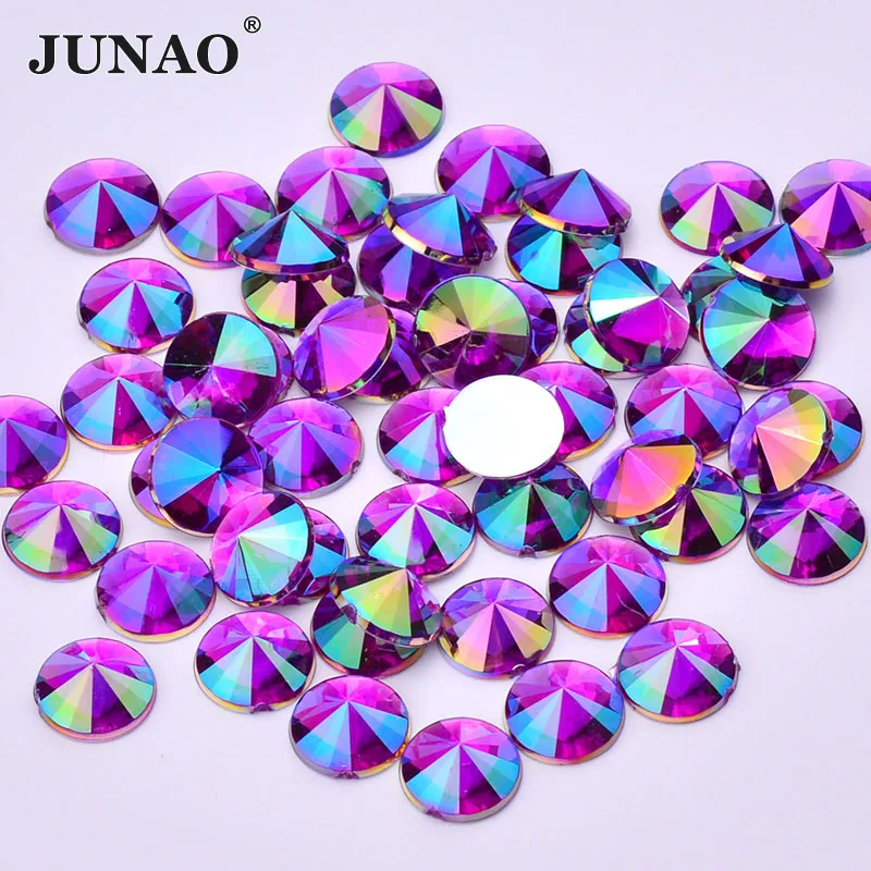 JUNAO 4 5 6 10 мм блеск фиолетовый AB Rivoli плоская подставка из горного хрусталя Круглый Акриловые Хрустальные Камни DIY Дизайн ногтей Уход за кожей ...