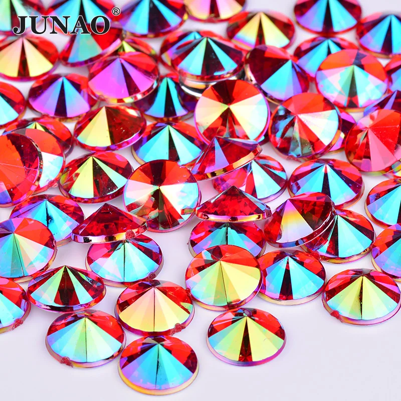 JUNAO 4 5 6 10 мм красный Стразы ab Crystal Flatback Акриловые гелевые Драгоценности для ногтей хрустальные камни Круглый Rivoli стразами для DIY ремесла
