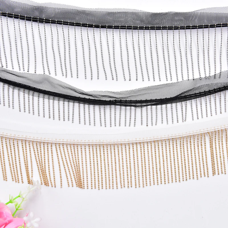 2yard/Lot Серебряный мяч цепи кисточкой Свадебные украшения Аксессуары Лента Тюль с кружевной отделкой ткани бисером пришить Одежда Обувь Сумк...
