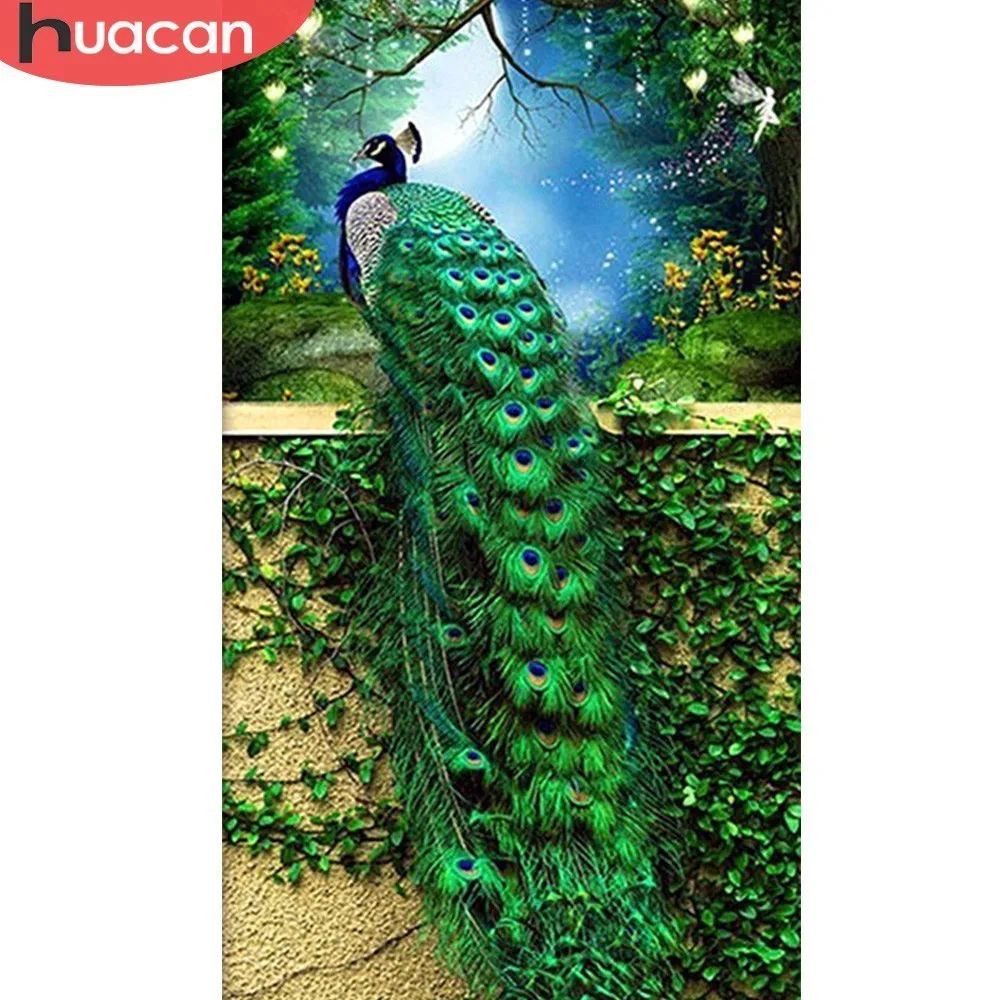 HUACAN Вышивка крестом Вышивка бисером, животное 5D DIY полный квадратный изображение горного хрусталя Бриллиантовая роспись Павлин домашнего д...