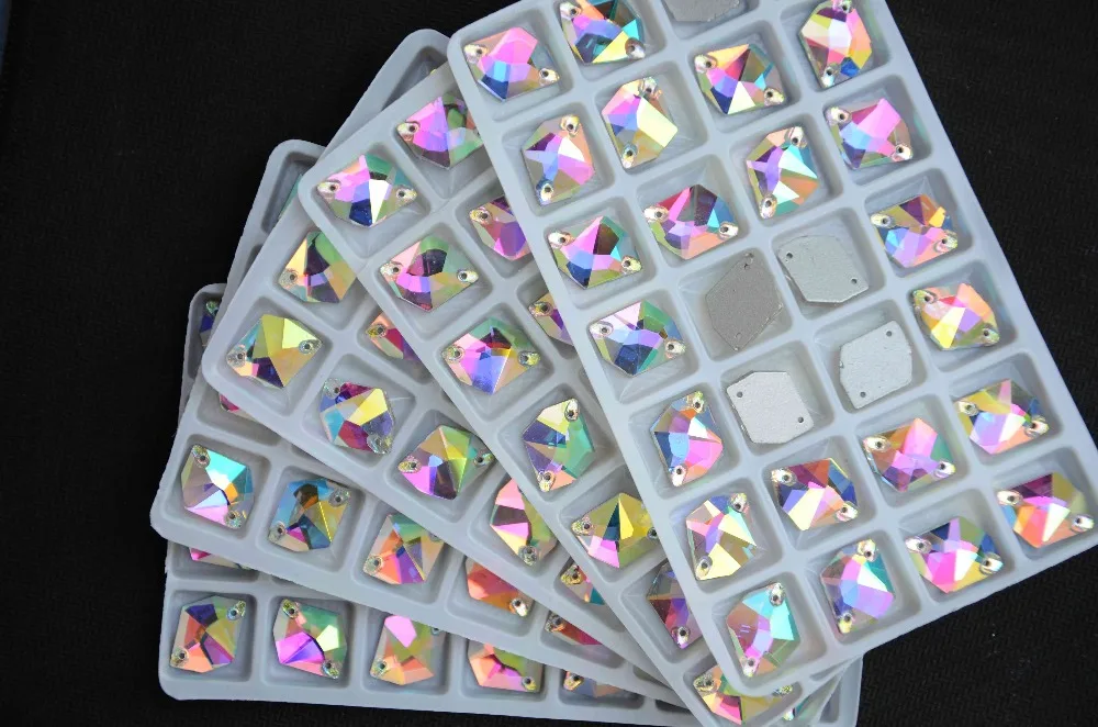 Все размеры Cosmic Форма пришить Камни Crystal Clear AB плоской задней 2 holes11 * 14 мм, 13*17,16x21,21*27 мм Стекло Вышивание Кристалл Бусины
