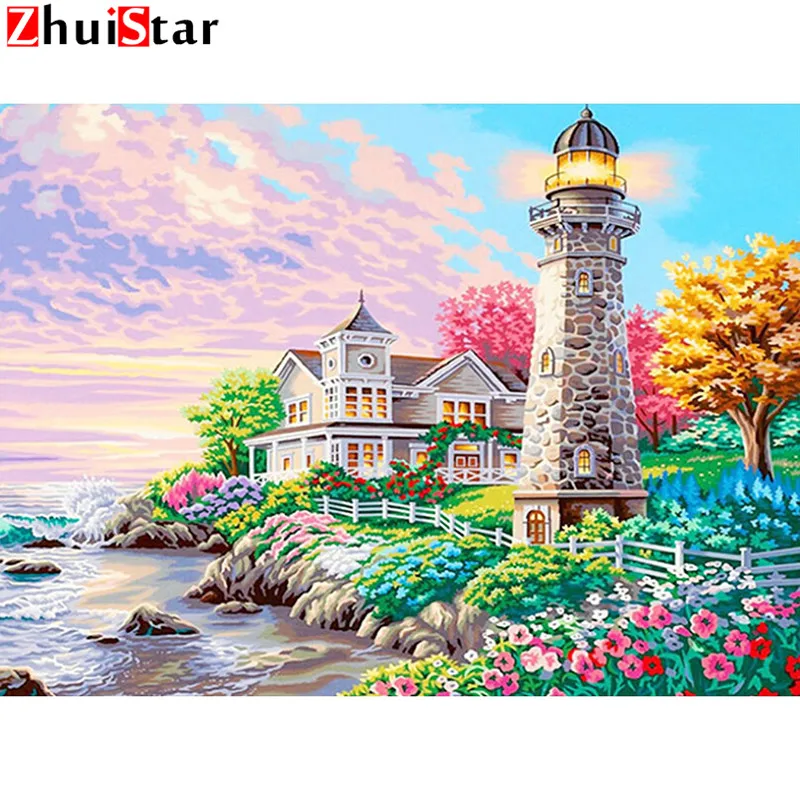 5D алмазная картина "МАЯК" рукоделие квадратный полностью Алмазный пейзаж узор горный хрусталь вышивка крестиком Мозаика XY1